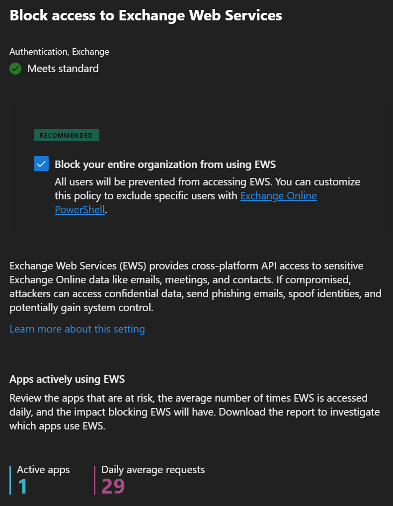 Here’s an example. Block access to Exchange Web Services. Just tick off the box and EWS is blocked. But what are the implications?